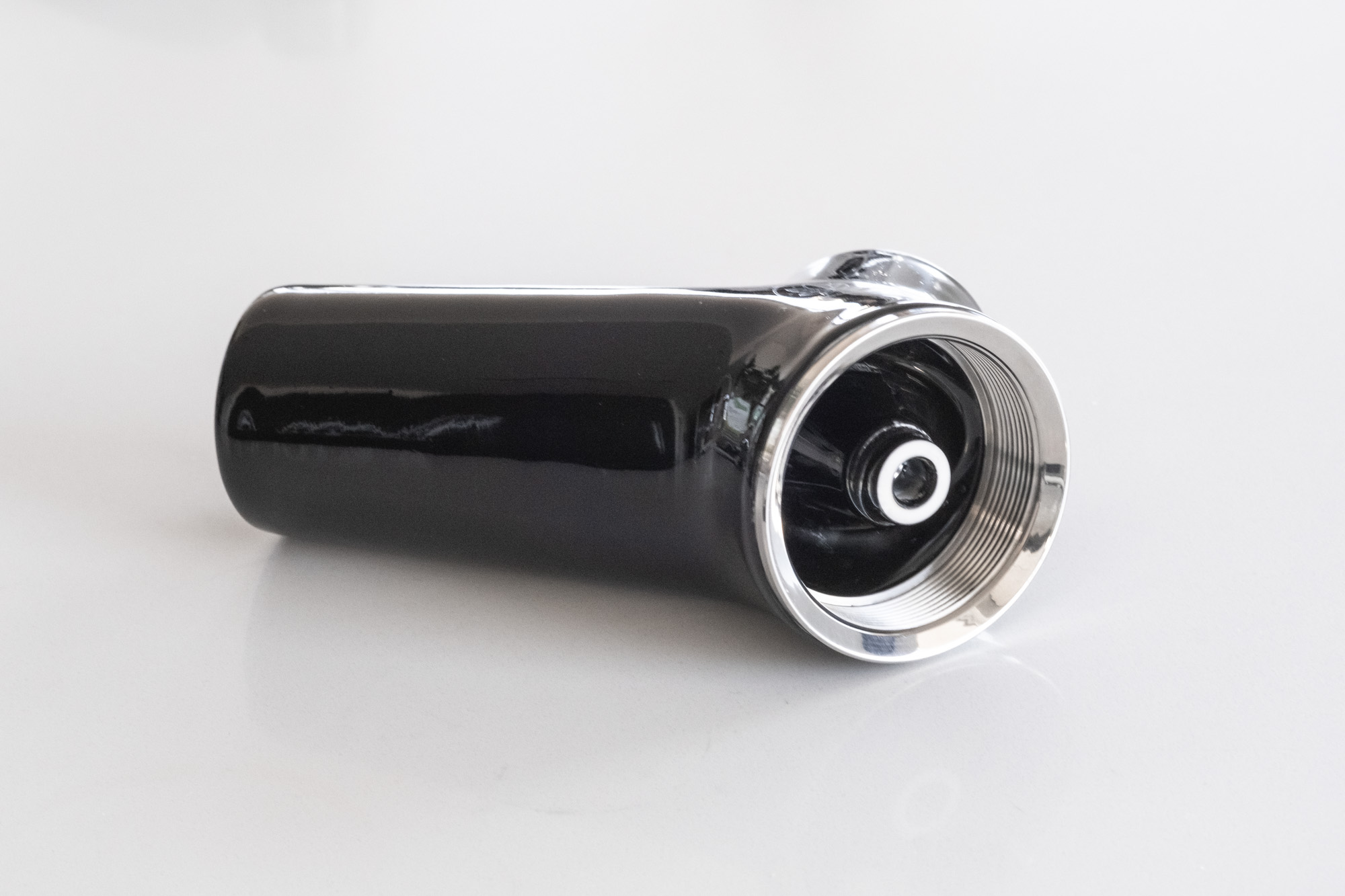Flipping it over, you'll find a small port that connects to the stem, and the fairly deep thread providing a secure connection to the base.